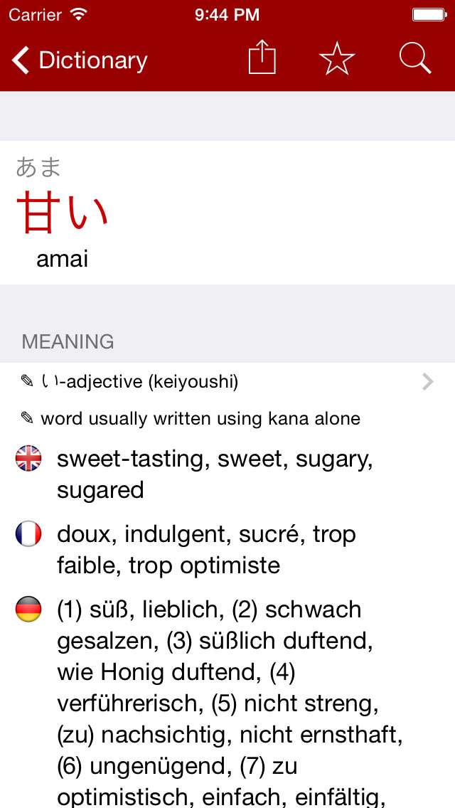 You can search the dictionary using any of kanji, kana, romaji or a word in one of the supported foreign languages. imiwa? will auto-magically find what you are looking for.